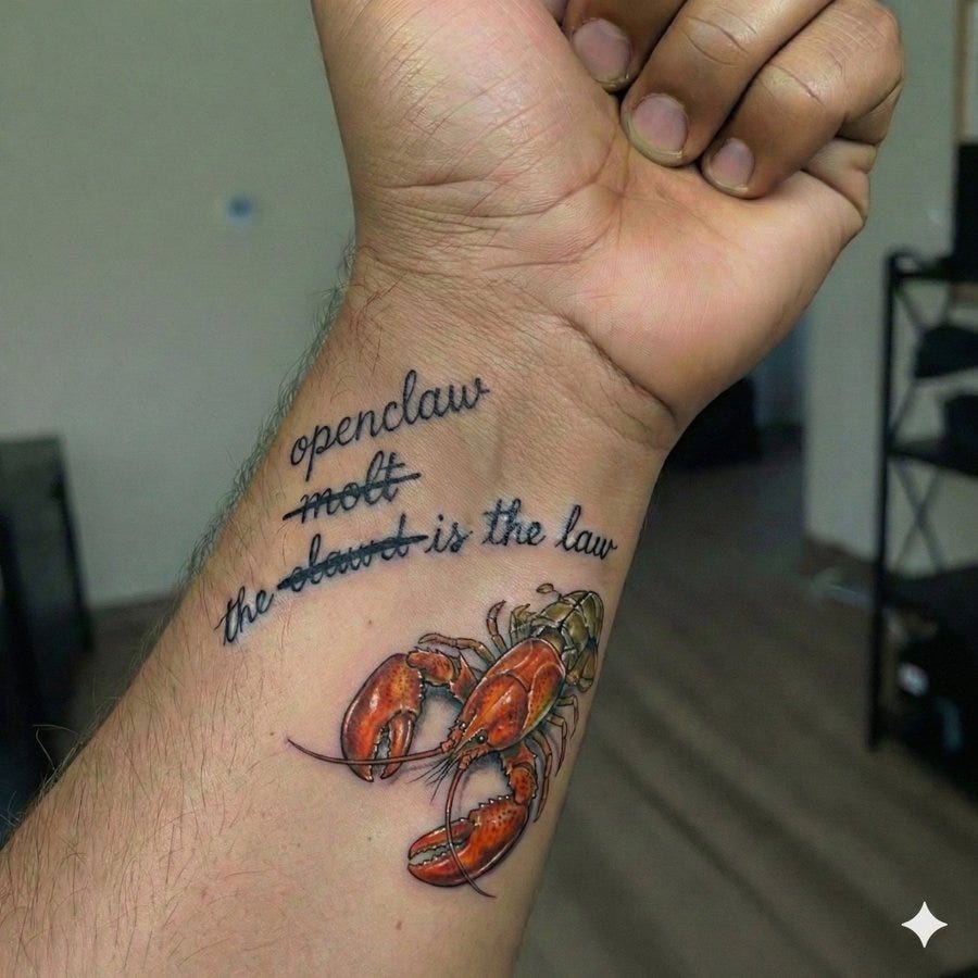 Fast forward just a short bit to near the end of January, and it was a full-blown viral explosion. To condense the story, Anthropic took notice and put pressure on Pete to rename the project. “Clawdbot” was too close to "Claude” and could infringe copyrights. (I know ironic right?) Pete quickly complied, renaming the project (temporarily) to “Moltbot” (the mascot was a lobster and well… lobsters molt… right?)